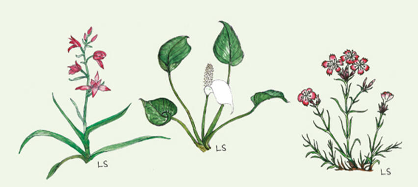 Wir haben diesen einmaligen Satz von fünf Grußkarten aus Motiven erstellt, die Loki Schmidt im Laufe vieler Jahre entweder zur Vorstellung der "Blume des Jahres" oder für Porzellanteller und -tassen gestaltete.