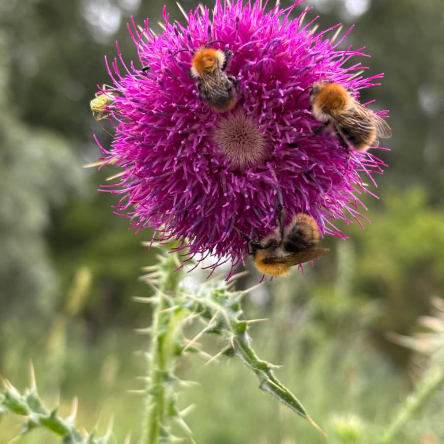 Carduus nutans ist eine Pflanze der ausdauernden Ruderalfluren, welche insbesondere Insekten und Vögeln wichtige Lebensgrundlagen bieten. Somit ist die Nickende Distel Nahrungshabitat für Schmetterlingsraupen, Insektenlarven, sogenannte Körnerfresser, vor allem Finkenvögel wie Stieglitz (auch Distelfink genannt), Futterpflanze für Falterarten (Feuriger und Großer Perlmuttfalter, Graubindiger Mohrenfalter, Apollofalter, Mattscheckiger Braundickkopffalter u.a.), Bienen- und Hummelweide. Die Schwebfliegen sammeln die Pollen, die Ameisen werden über den süßen Duft angelockt.