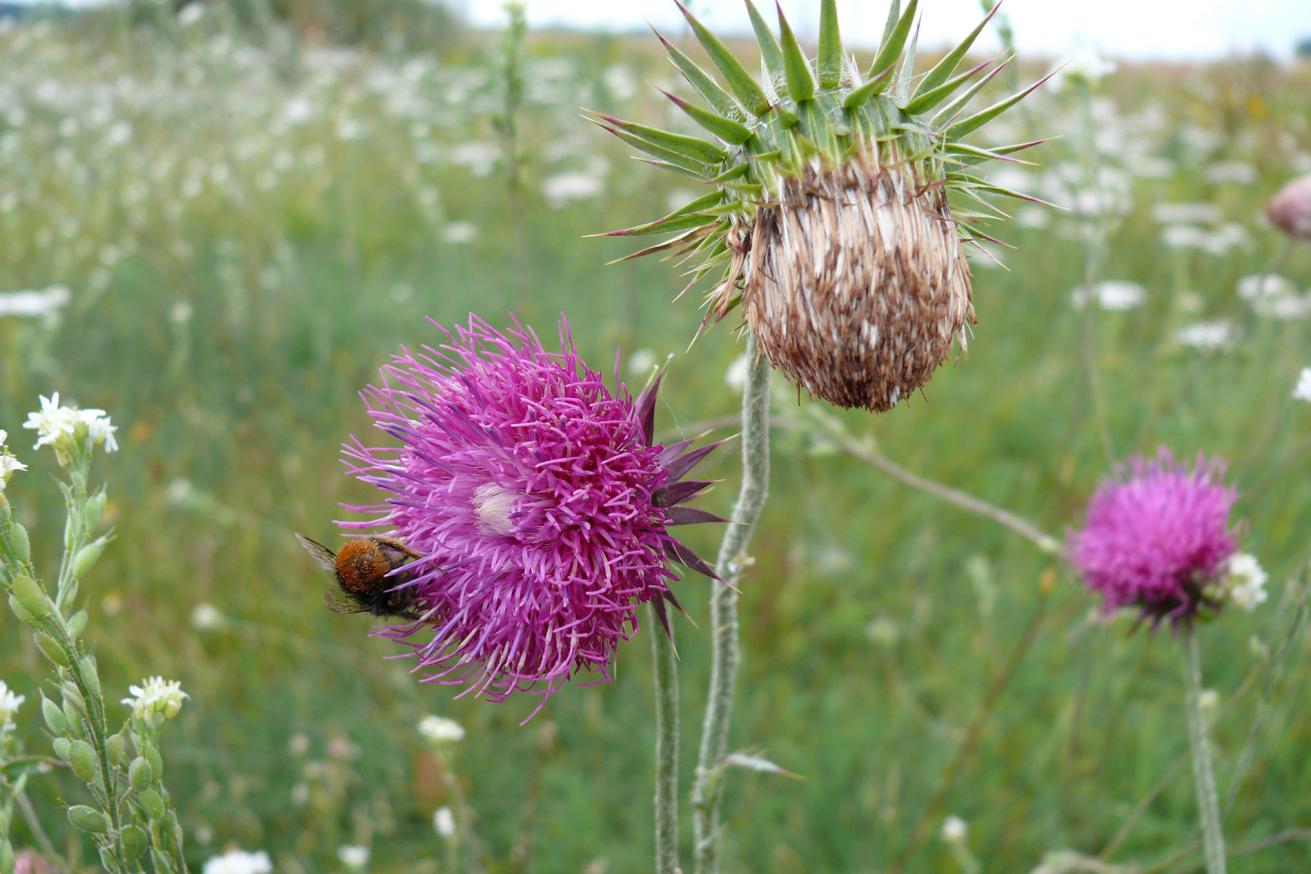 Die Flora und Spontanvegetation der Dörfer war vor ca. 25 Jahren ein Schwerpunkt-Thema von Fachveröffentlichungen, Untersuchungen und Veranstaltungen, so gab es bereits 1981 ein internationales Symposium im Rheinischen Freilichtmuseum Kommern/Eifel zum Thema “Erhaltung gefährdeter dörflicher Pflanzengesellschaften und historischer Nutzpflanzenkulturen”. Während in der Vergangenheit der ländliche Raum mit einer Vielzahl von unversiegelten Teillebensräumen und Strukturen zwischen Hof- und Gebäudebereich, entlang von Mauern und Hecken, auf Abfall-, Zwischenlager- und Restplätzen etc. geprägt war, hat heute die sogenannte Verstädterung auch das Dorf verändert und insbesondere versiegelte Flächen hinterlassen. Mit der Nickenden Distel, eine Charakterart der sogenannten Dorfflora, soll das Thema noch einmal aktualisiert werden. Bis in die 80er Jahre waren ihre Bestände noch ausreichend vorhanden, inzwischen wird die Art als gefährdet eingestuft. Analysen über den regionalen Rückgang der dörflichen Biotope stellen nicht nur Einbußen bei der Vegetation, sondern immer auch bei der zugehöhrenden Fauna fest.