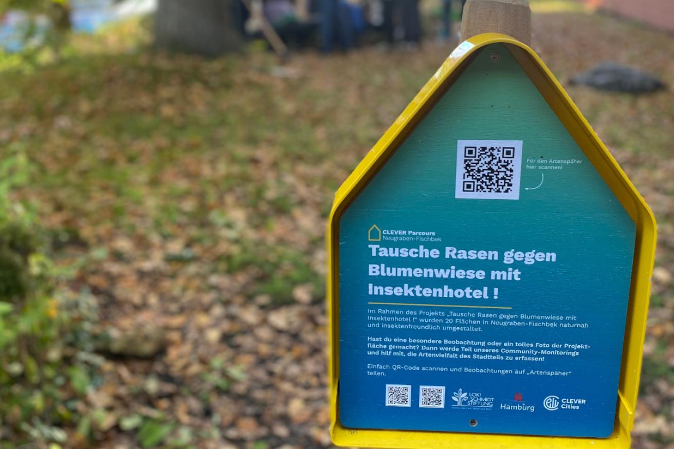 Das Projekt war Teil des europaweiten Projektes CLEVER Cities, welches zwischen 2018 - 2023 verschiedene Teilprojekte im Gebiet Neugraben-Fischbek durchführte. Ziel des Projektes war eine Förderung nachhaltiger und sozial integrativer Stadterneuerung mittels lokal zugeschnittener naturbasierter Lösungen (sog. Nature Based Solutions; kurz NBS). Das Projekt „Tausche Rasen gegen Blumenwiese mit Insektenhotel“ soll so auch kleinflächig dem Verlust der Biodiversität sowie dem abnehmenden Interesse an der direkten Umwelt und Natur entgegenwirken. Dabei entstehen weitere Trittsteine zur Verbindung zwischen den beiden Naturschutzgebieten „Fischbeker Heide“ und „Moorgürtel“.
