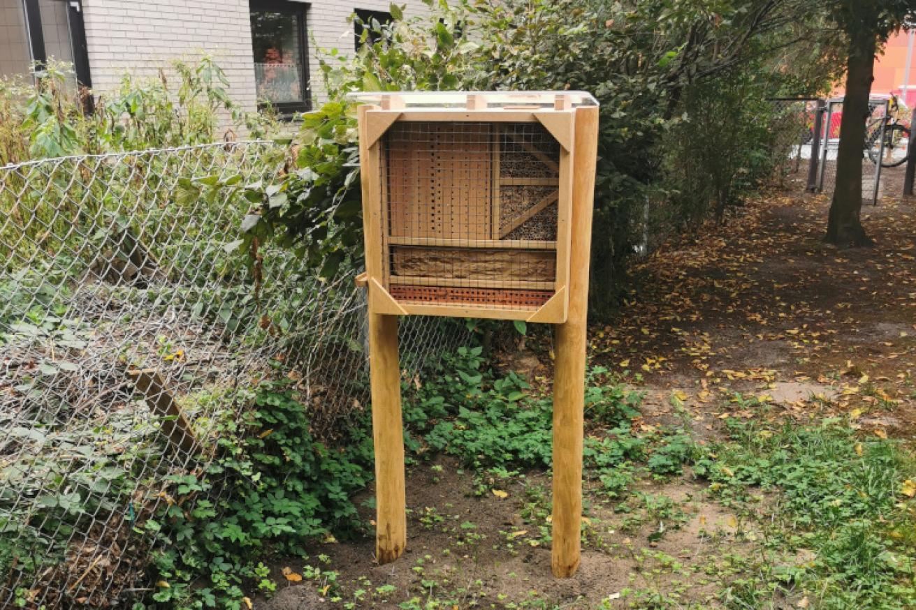 So wurden monotone Rasenflächen zu artenreichen Wildblumenwiesen, aber auch Wildstaudenbeete oder Blumenkästen bepflanzt, die den Insekten das ganze Jahr über ein Nahrungsangebot bieten. Damit auch Nistmöglichkeiten vorhanden sind und zum näheren Kennenlernen und Beobachten der Wildbienen & Co, wurden Nisthilfen („Insektenhotels“) in verschiedenen Größen von der Loki Schmidt Stiftung in Zusammenarbeit mit einer lokalen Tischlerei bereitgestellt. Der Prozess wurde durch ein Monitoring der Pflanzenarten vor und nach der Flächenumgestaltung (Pre-/Postgreening) begleitet.