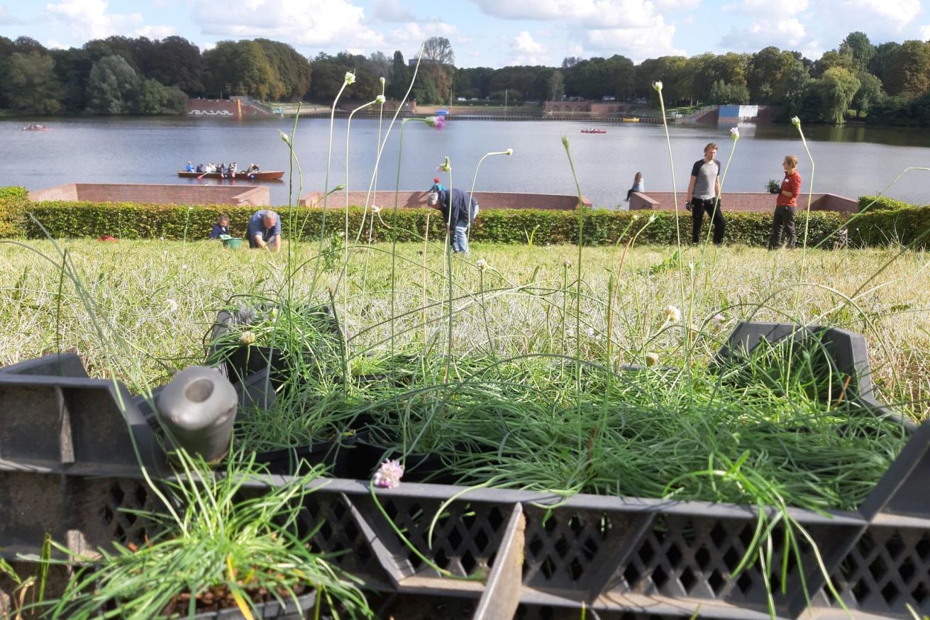 Das Buffet ist eröffnet: Seit Donnerstag, 12.9.2024, haben Hamburger Insekten eine weitere Möglichkeit, sich an Grasnelken, Gewöhnlichen Küchenschellen, Gemeinen Wegwarten und Kartäuser-Nelken gütlich zu tun. Azubis des Stadtparks, ein Team von "Ökologie im Stadtpark", Passanten sowie Mitarbeitende der Loki Schmidt Stiftung hatten sich im Stadtpark getroffen, um für mehr Vielfalt für Wildpflanzen in Hamburg zu sorgen – und bedrohten Pflanzen und Insekten eine Chance zu geben.
