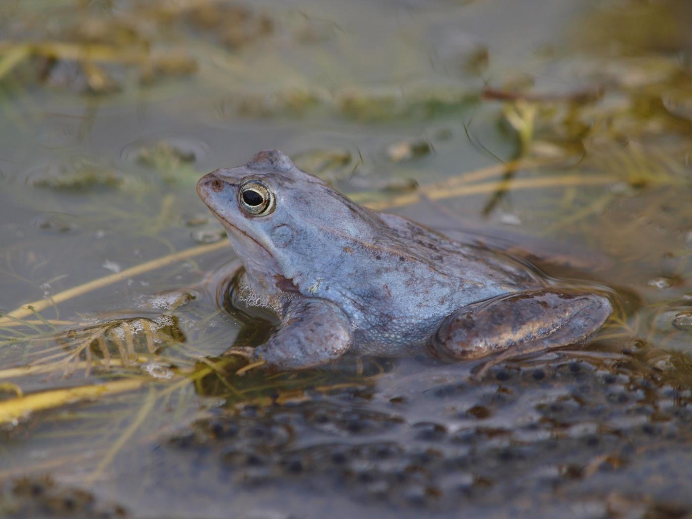 Nur wenige Tage im Jahr zeigen die männlichen Moorfrösche ihr blaues 'Hochzeitskleid'. – Foto: Loki Schmidt Stiftung