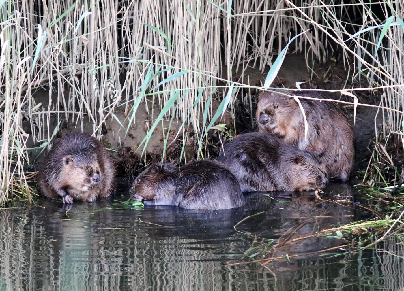 Im Hamburger Bezirk Bergedorf ist der Biber seit 2010 wieder ansässig, 2016 konnten die ersten Jungtiere nachgewiesen werden. In einem kleinen Schutzgebiet im tideunabhängigen Bereich hinter dem Elbdeich leben derzeit drei Biber: zwei Elterntiere und ein im Frühjahr 2021 geborenes Jungtier. Das Revier ist besonders artenreich, viele große Säuger, darunter Reh, Fuchs, Dachs, Feldhase und Steinmarder leben hier zusammen, aber auch neue Arten wie Nutria, Waschbär und Marderhund werden regelmäßig gesichtet. Durch den Einsatz einer Wildtierkamera gelang nun erstmals der Nachweis einer Fischotter-Familie in diesem Gebiet. „Wir vermuten, dass es sich um eine Fähe mit zwei Jungtieren handelt. Wahrscheinlich hat der Biber durch sein Verhalten beste Voraussetzungen für Rückkehr und Ansiedlung des Fischotters geschaffen“, so Frederik Landwehr vom Projekt Biber der Loki Schmidt Stiftung.