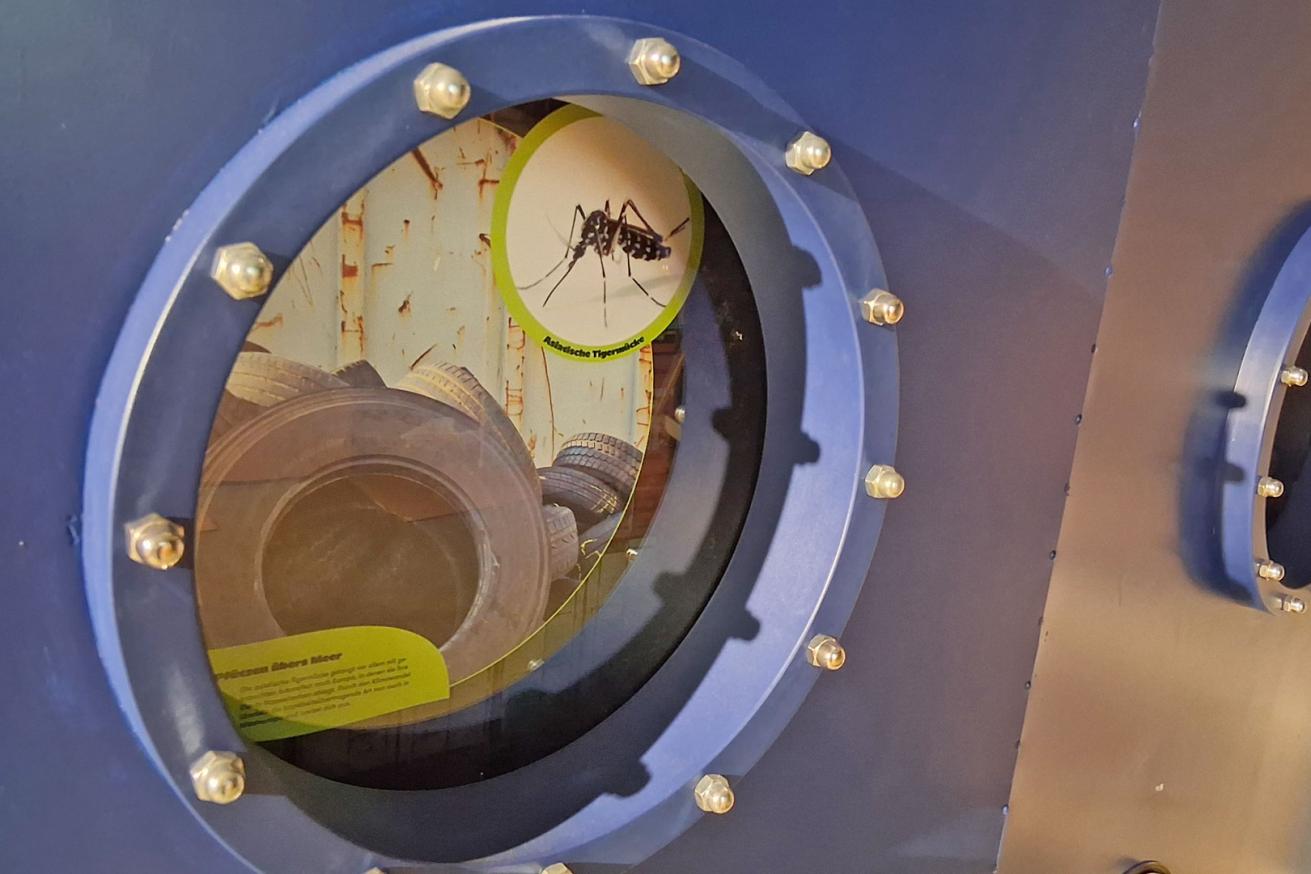 Und an Schiffsrümpfen! Ein 4 x 2m großes Modell zeigt, welche Arten aus fernen Ländern zu uns reisen: Waschbären, Bananenspinnen, Wollhandkrabben, Seepocken. Werfen Sie einen Blick in die Bullaugen und entdecken sie ihre Geschichten.