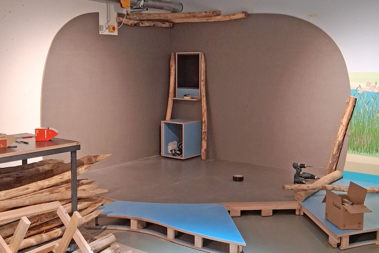 Die Fotos geben Ihnen einen ersten Einblick in unsere Ausstellung "NaturRaum HafenCity: Zwischen Elbe und Asphalt". Bis zur Eröffnung am 22. März 2026 bleibt noch viel zu tun. Präparate müssen ihre Plätze finden, interaktive Elemente installiert, Audios und Videos erstellt werden. Bald zeigen wir Ihnen, wie es weitergeht.
