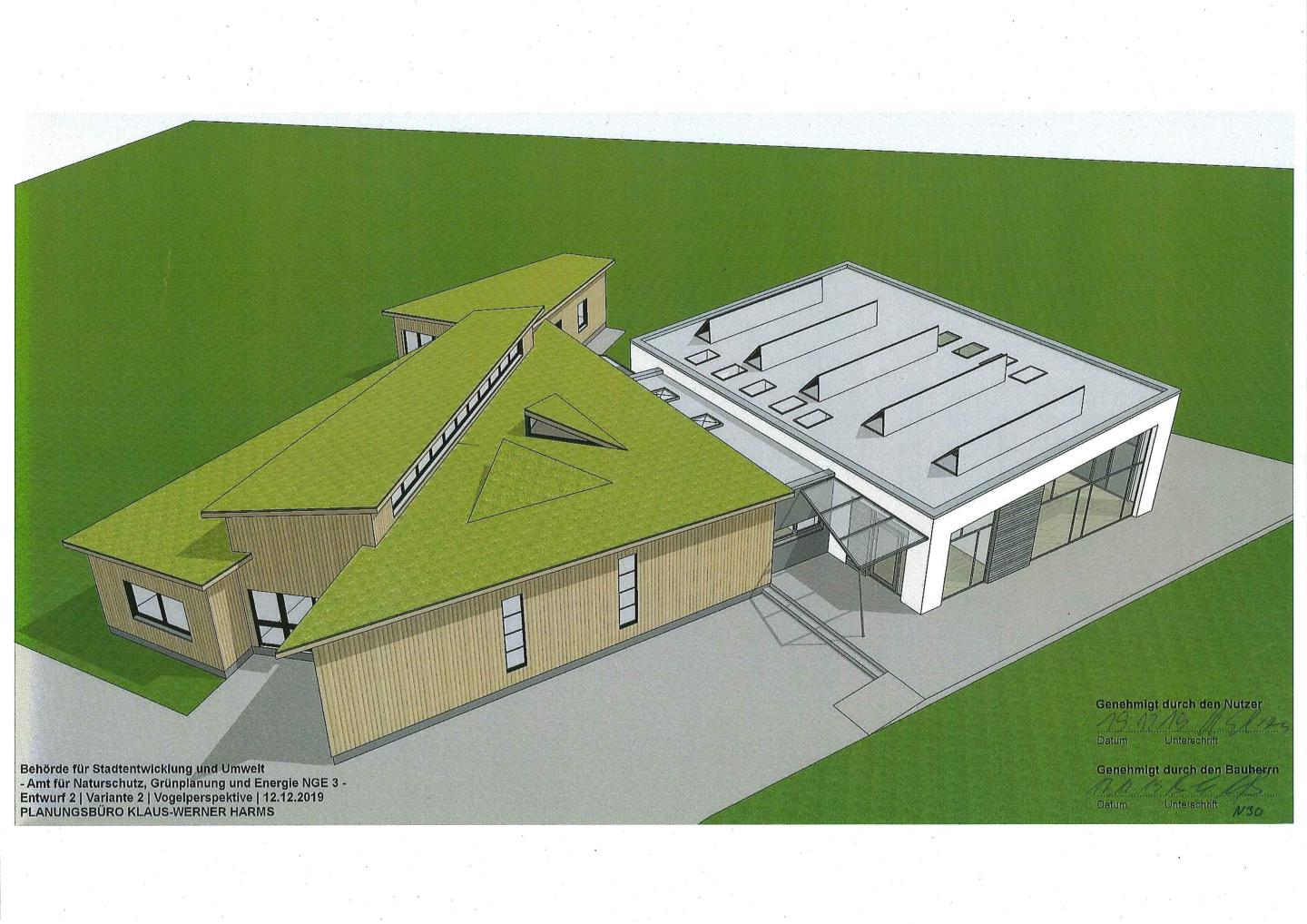 Endlich ist es soweit! Das Boberger Dünenhaus wird vergrößert, es erhält einen gläsernen Anbau.