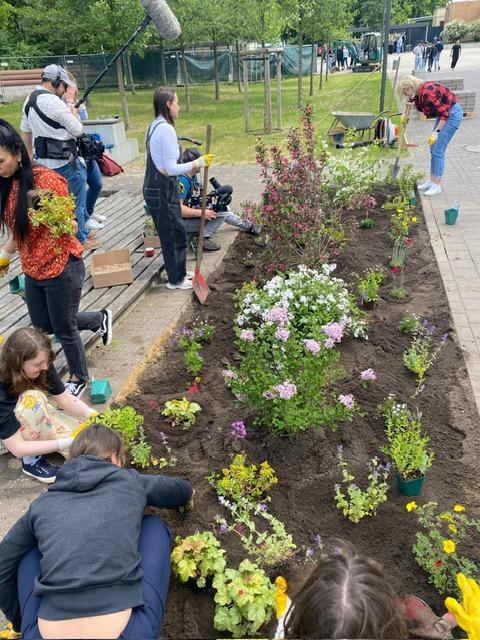 An ihrer noch im Bau befindlichen Schule haben drei Schüler der 6. Klasse aus eigener Initiative ein Hochbeet-Projekt ins Leben gerufen – mit essbaren Pflanzen, Wildblumen für Insekten und Rankpflanzen als Sichtschutz zur Straße. Sie organisieren Anbau, Pflege und die Beteiligung anderer Schüler*innen eigenständig und gestalten sogar eigene Infoschilder – ein echtes Vorzeigeprojekt für selbstbestimmtes Engagement.