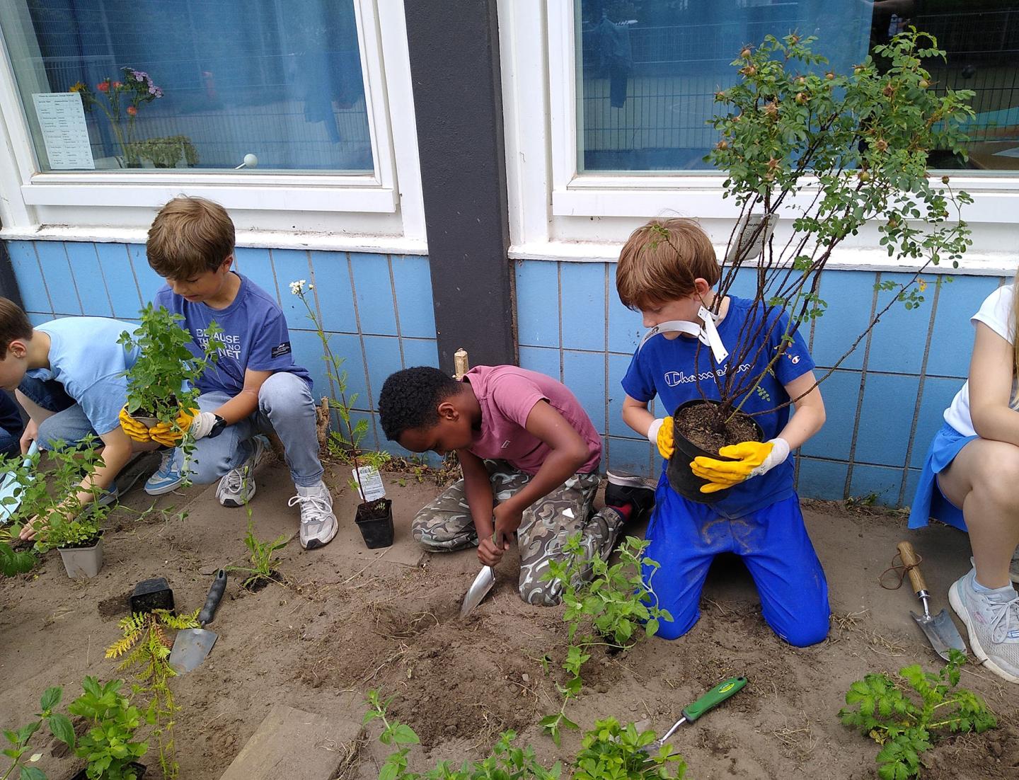Die Klasse 3c erforschte ihren kleinen Schulhofstreifen „Wildnis der Seepferdchen“ und entfernte nach Beratung durch MOIN STADTNATUR die bisherigen Pflanzen. Sie pflanzten gemeinsam 84 heimische Wildstauden, gossen sie regelmäßig und brachten mit viel Freude Schilder an, um ihre Fläche zu schützen. So förderten sie aktiv die Artenvielfalt und lernten Verantwortung für ihren Naturraum.