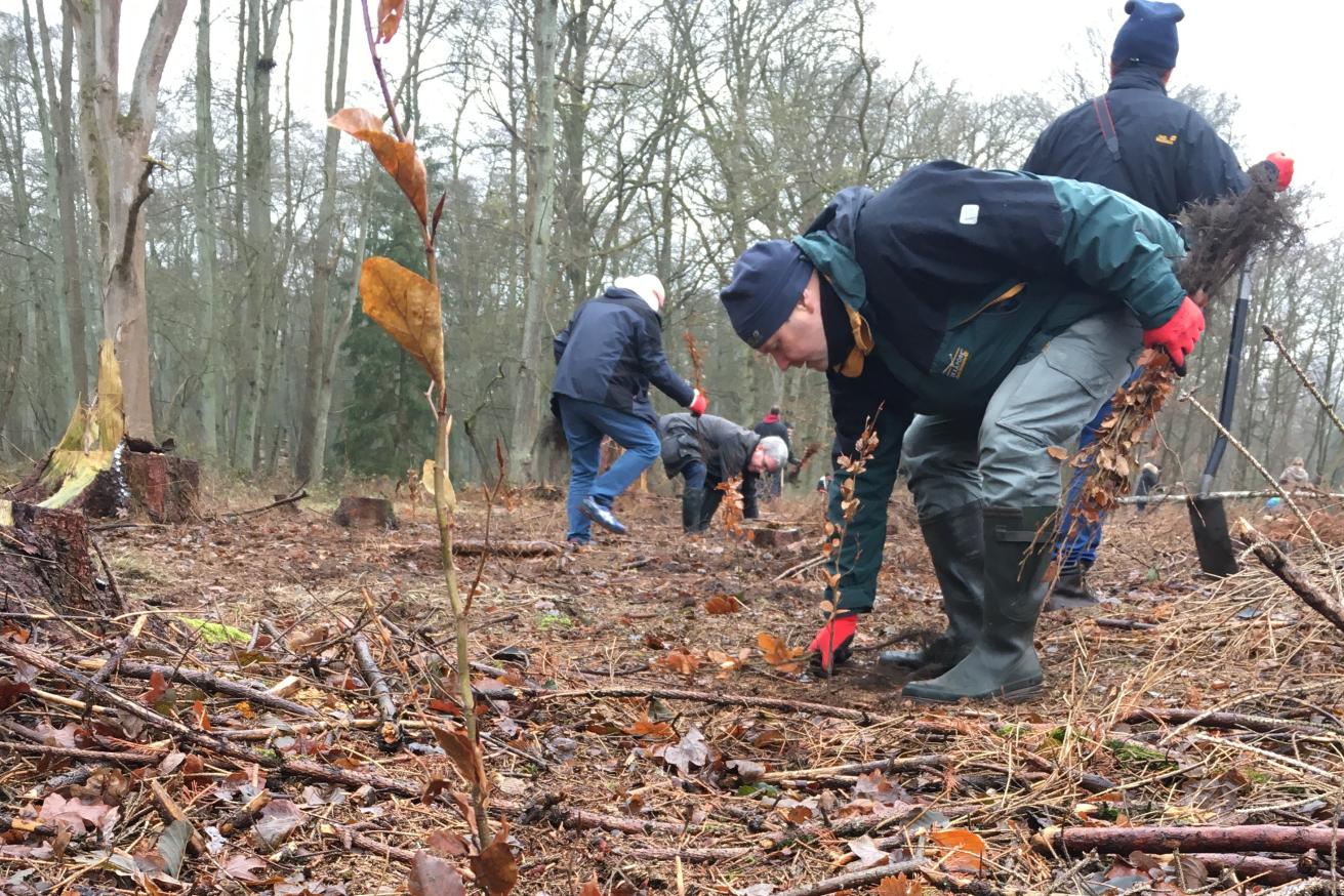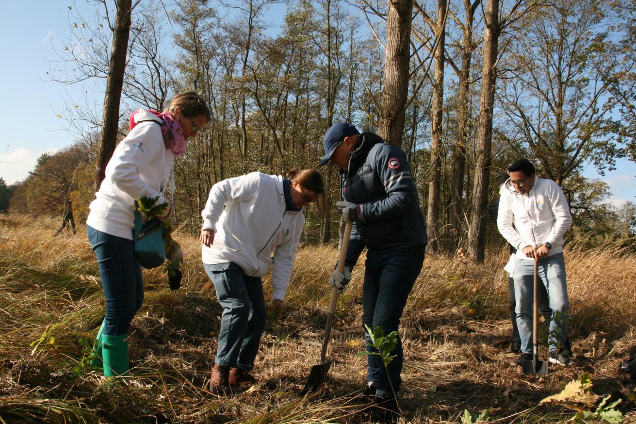 Mit vollem Körpereinsatz haben über 50 Mitarbeiter*innen von Barclays und der Loki Schmidt Stiftung am 30.10.2018 die ersten Stieleichen, eine typische Art der Hartholz-Aue, in die Erde gesetzt. In Abstimmung mit dem Gartower Deich- und Wasserverband wurden die Bäume binnendeichs bei Schnackenburg gepflanzt – dort, wo es für den Hochwasserabfluss unproblematisch ist. Dies war ein gelungener Auftakt für mehr Artenvielfalt an den Flussauen der Unteren Mittelelbe.