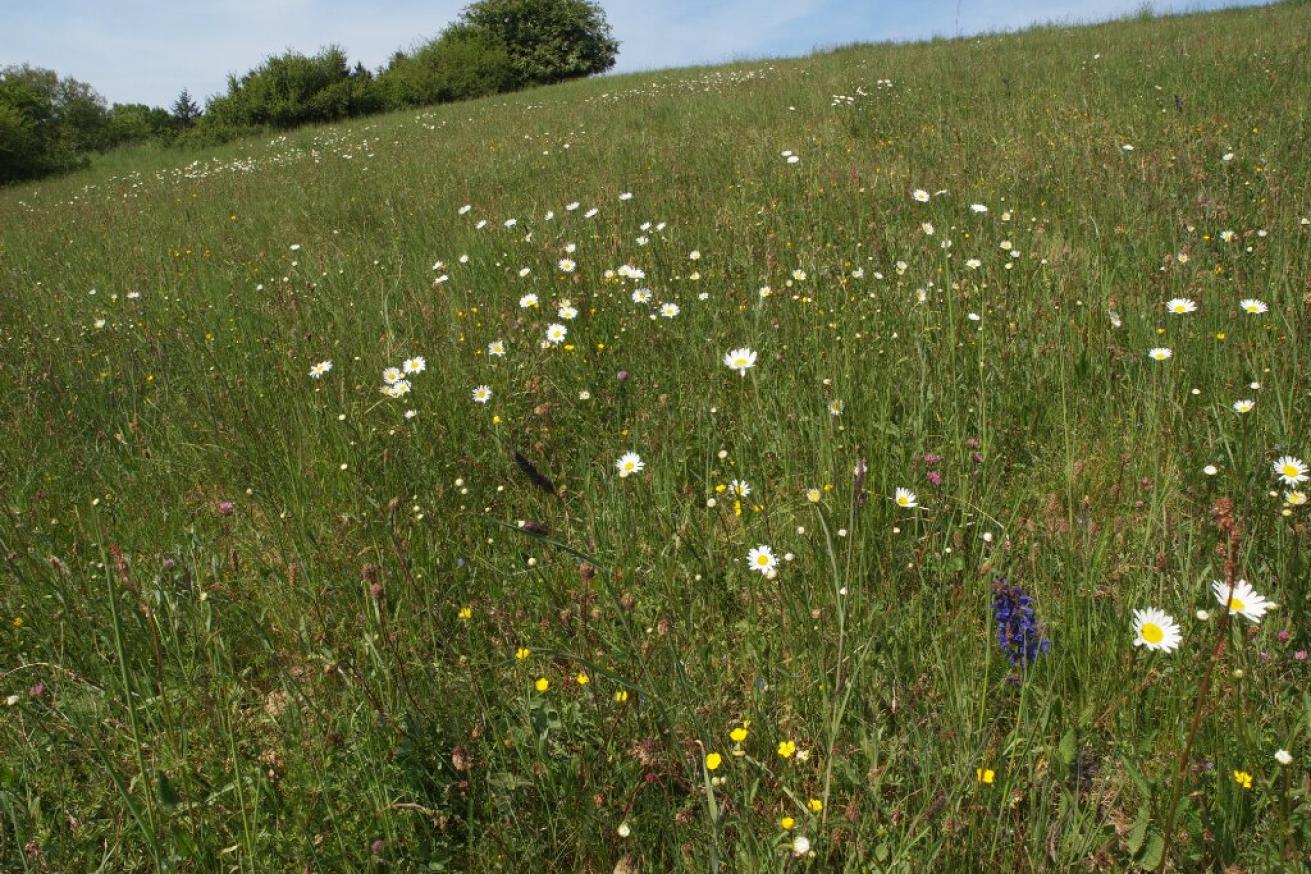 An einem sonnigen Hang in Hessen liegt eine Orchideenwiese der Stiftung, auf der unter anderem das Kleine Knabenkraut wächst. Auch die Gewöhnliche Kreuzblume, der Kleine Wiesenknopf, der Wiesensalbei und der Knollige Hahnenfuß blühen hier. Grünwidderchen, Rotklee-Bläuling und Grünspecht sind ebenfalls zu beobachten.